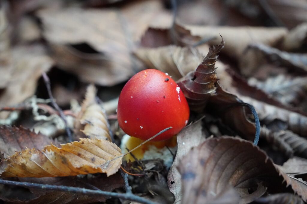 今はタマゴタケが真っ盛りです。