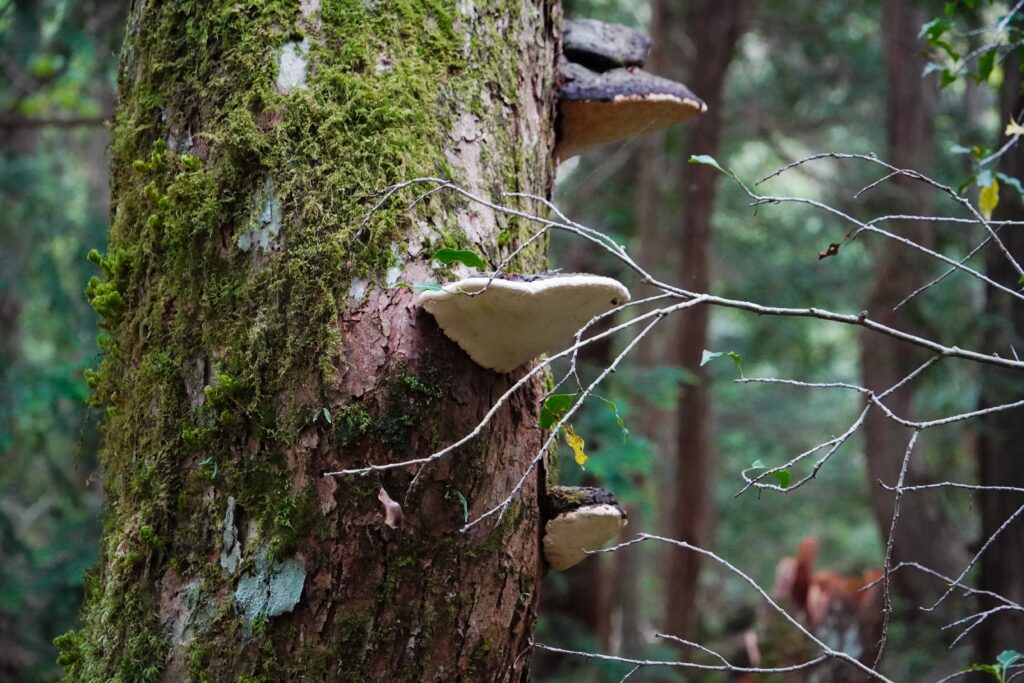 腐朽菌がいないと枯れた木が腐らず新たな養分ができません。木の幹についているキノコは大抵これにあたります。サルノコシカケが特に有名ですね。