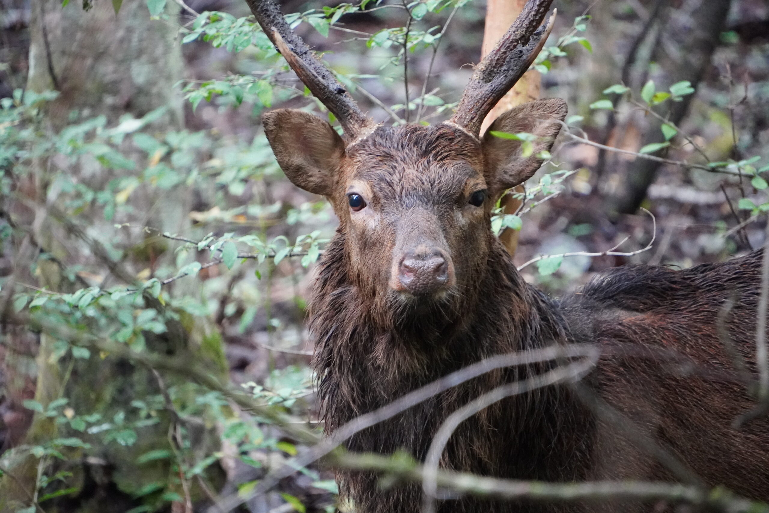 雄鹿の姿も目立つようになりました。普段は雌鹿と小鹿ばかりですが、繁殖期になると立派な角を生やした雄鹿が山から下りてきて縄張りをつくります。家のあたりでも標高は1200メートル近くありますが、夏の間はもう少し高い場所、もしくは森の深い場所で過ごしている印象です。