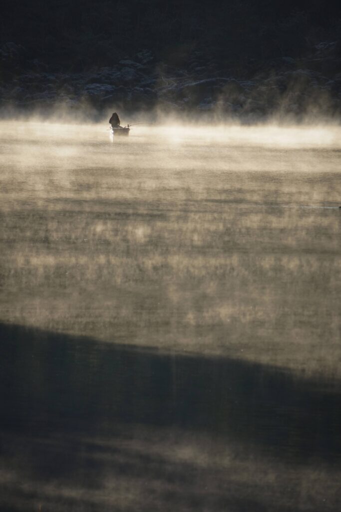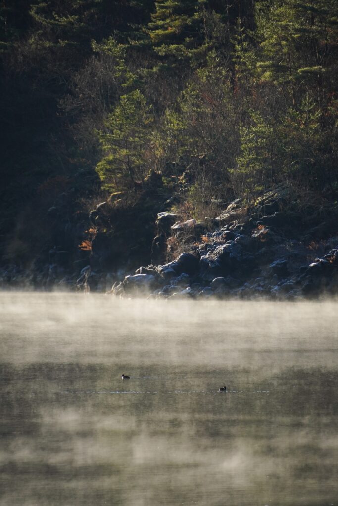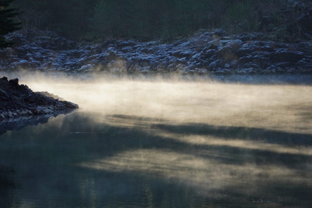 3. この霧が湯気のように湖から立ち昇ります。