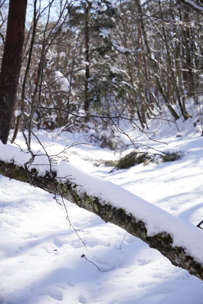 雪の重さに耐えかねて、折れた枝や倒れた木もあちこちに見受けられます。